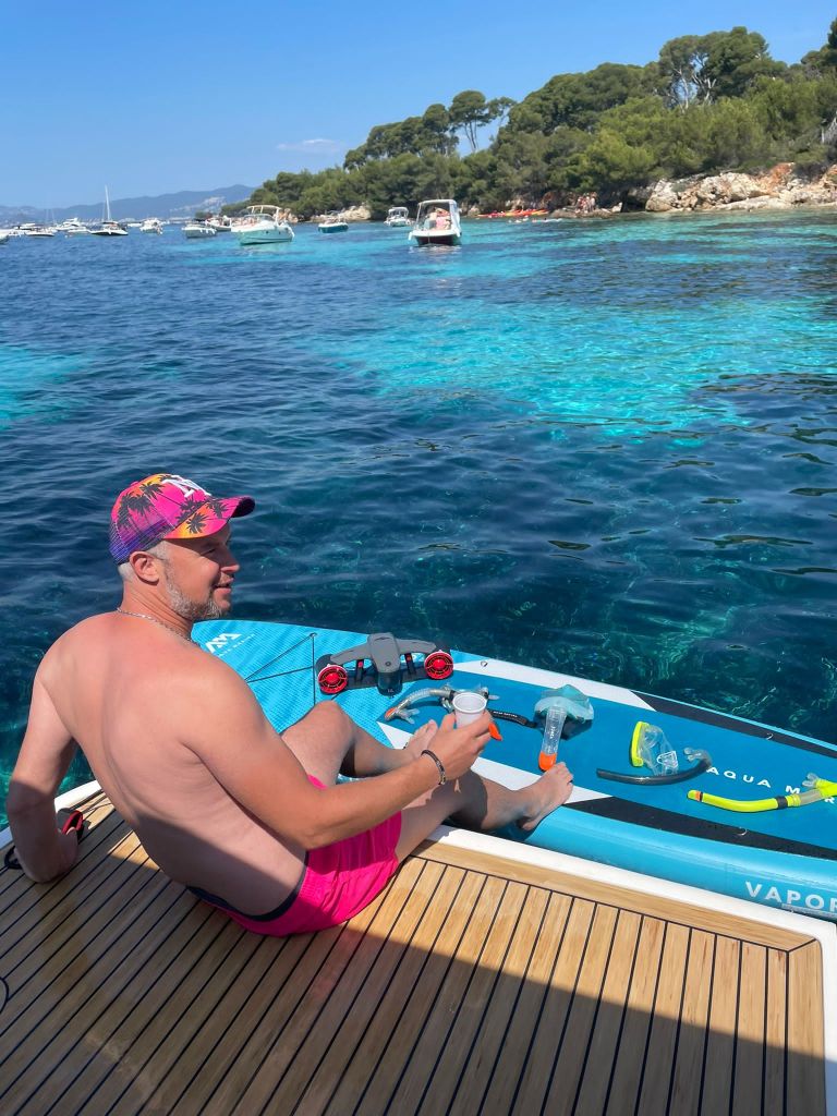 Au programme : Départ Mandelieu port Marina parc à 10h, traversé de la siagne durant 20 min à 3 noeuds, arrivée en mer 40 min de navigation à 7 noeuds jusqu’aux îles de lérins, 4h de baignade, repas, paddle, (20-30min inclus de scooter sous-marin), visite éco-mlusée sous marin, navigation 15-30 min lieu de rdv jet-ski, 1h de jet-ski, retour mandelieu 40 min de navigation, 20 min dans la siagne retour 18h.